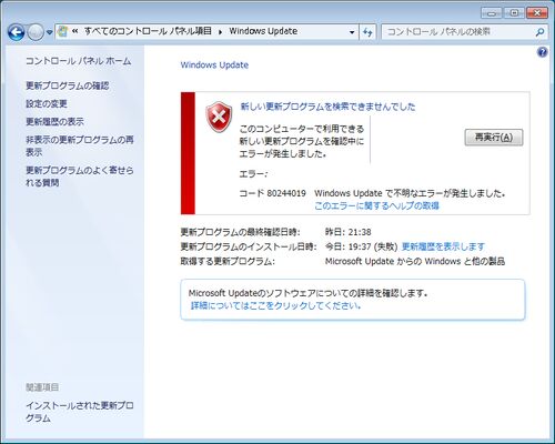 本日はまたWindows Updateがエラーを出してしまいました。対処しましたのでご報告します。図:エラーの画面 今日のエラーは「Windows Updateで不明なエラーが発生しました。」コード「80244019」です。エラーコードが80070422や8DDD0018でも同じ対処になるそ…