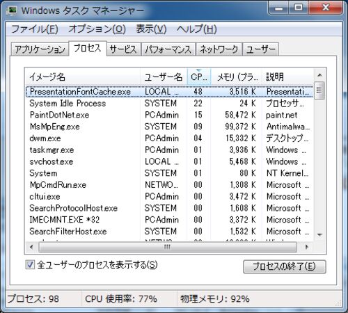 今日はあるPCでやけにCPU使用率が高いなぁ…と思ったら、PresentationFontCache.exeというプロセスだった、という内容のご報告です。最終的にサービスを止めてしまいました。