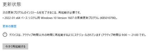 1月18日に定例外のWindows Updateが自動更新(※基本的には自動更新ではないらしい)で適用されたのでご報告です。 1月の月例更新で発生した不具合を対処する更新プログラムの模様。