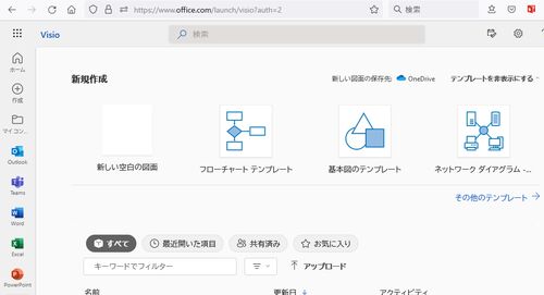 前回「LinuxにインストールしたMicrosoft EdgeでOffice for Web」をやっていてちょっと気づいたのですが、Office for WebでVisioが提供されていたのでご報告です。