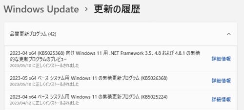 5月も連休が終わってWindows Updateの週になりました。今月のWindows Updateを適用した履歴です。