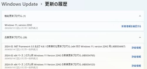 先月のエラーがちょっと気になる2月のWindows Updateです。結局回復パーティションの操作が必要というのは変わらず。先月エラーだった環境は今月もエラーになります。