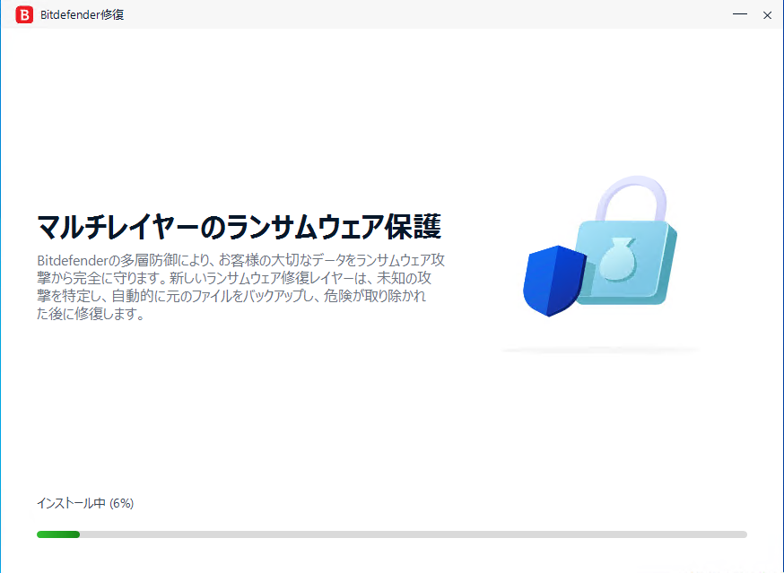 1.ダウンロードしたBitdefenderファイルをダブルクリックすると、インストーラーがすぐに起動します。