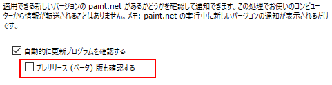 アップデートを確認するときは、プレリリース(「ベータ」)バージョンも確認するかどうかを判定する設定箇所。デフォルトは無効化=0