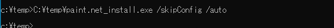 テスト的に「C:\temp」に保管した「paint.net_install.exe」(ダウンロードファイルをリネーム済)という条件で前回調べたオプションを試していきます。