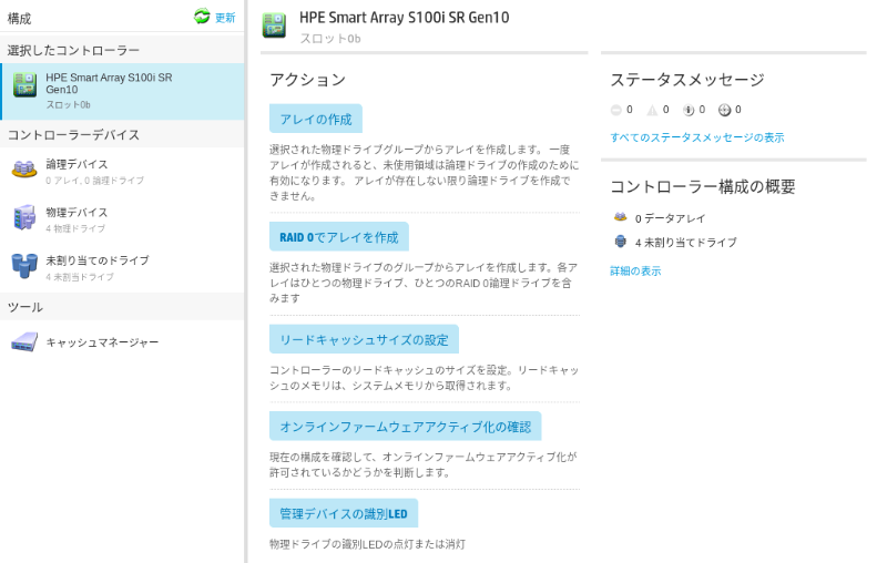 これでSmart Storage AdministratorでRAIDアレイの構成ができるんじゃないかと。