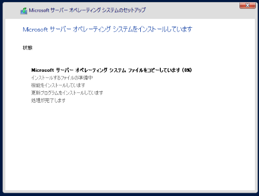 ようやくここまでたどり着きました。Rapid Setup画面からの再起動後はWindows側のインストーラが起動してインストールを継続することになります。