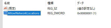 ここに、「AllowNetworkLocations」をDWORD値で「1」で作成します。