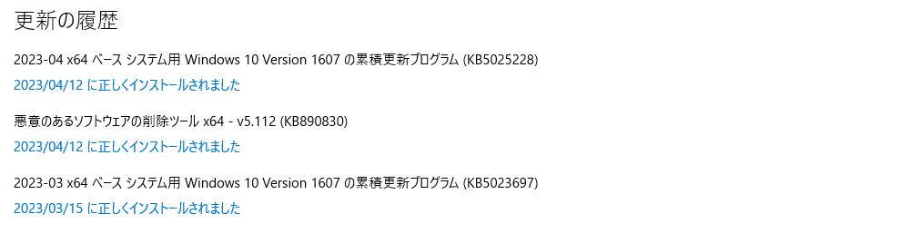 - 2023-04 x64 ベース システム用 Windows 10 Version 1607 の累積更新プログラム (KB5025228)