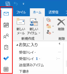 このバーはOffice365のOutlookを利用しているとおなじみの機能切替「Outlook ナビゲーションバー」というやつです。