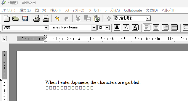 デフォルトのフォントが「Times New Roman」となっているのでこのフォントを別のフォントに変更すればちゃんと表示されるのですが、毎回変更する一手間が必要になります。