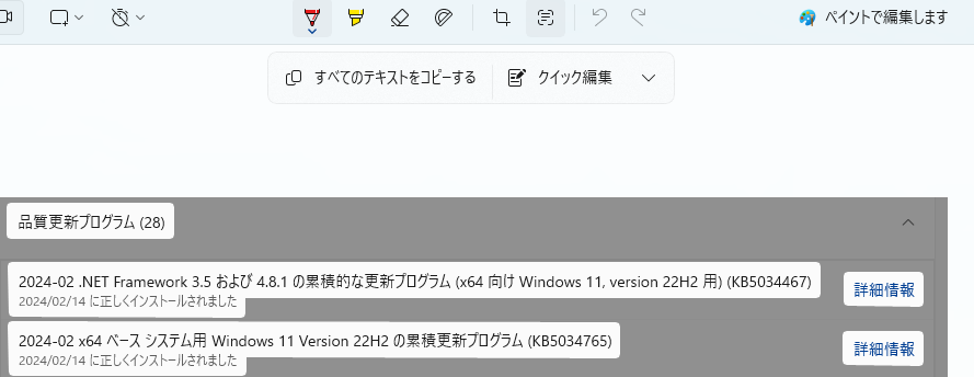 Snipping Toolで切り取った画像から文字データを収集できる、という機能。
