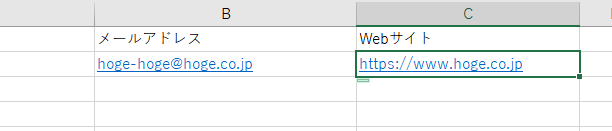 ただ、たくさんのセルにこれをやるとなると少々手間が増えます。そこで今回の設定で自動的なハイパーリンク化を無効にすることにしました。