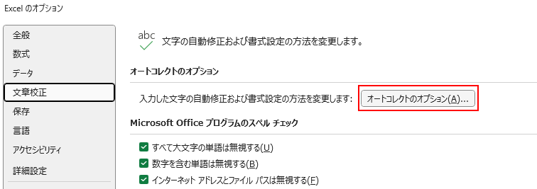 「オートコレクトのオプション」というボタンをクリックして選択します。